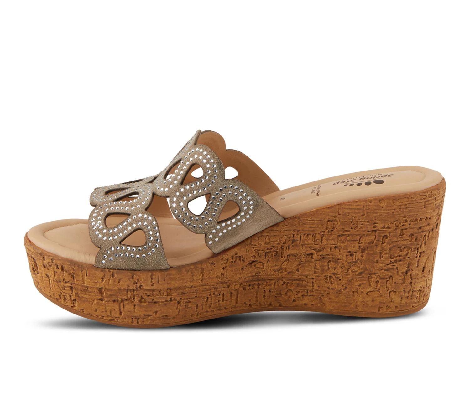 - Add a little sparkle to your life with this beautiful crystal upper with open cutouts on a slide wedge giving an elegant feel to a beautiful comfortable sandal. Easy slip on entry. Made in Italy.