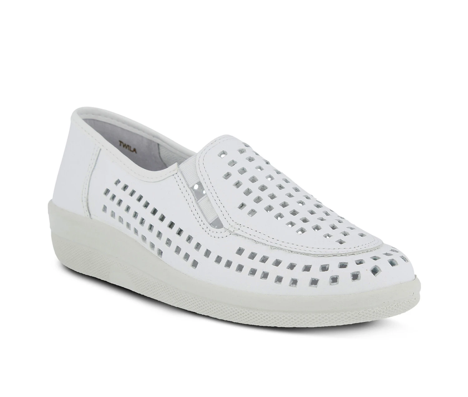 - Get everyday style everywhere you go with the Spring Footwear Twila! These durable leather flats have an easy slip-on design. The leather padded insole and flexible outsole combine to keep you walking in solid comfort throughout the day.