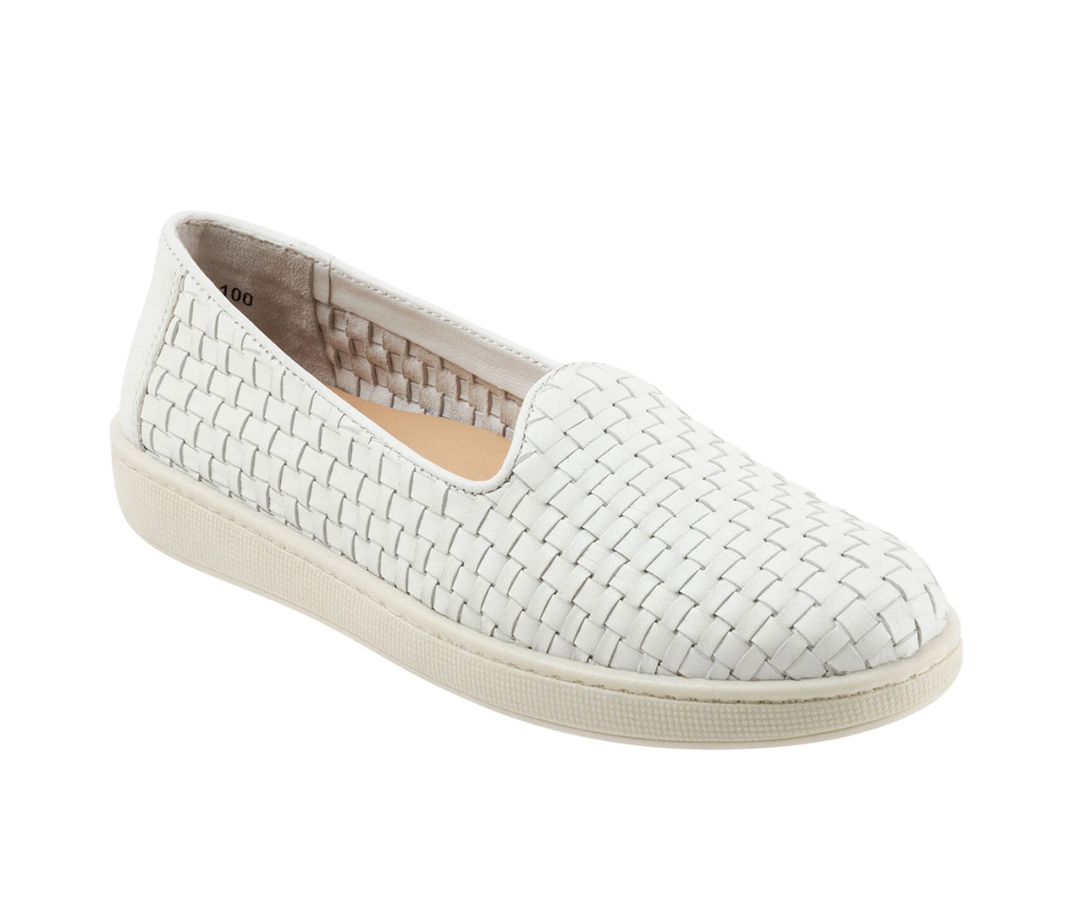 - Adelina combines woven style for a unique casual slip on. A cushioned footbed with arch support is removable and the unit rubber sole is supportive and slip resistant. A soft lined upper cradles your foot in comfort.