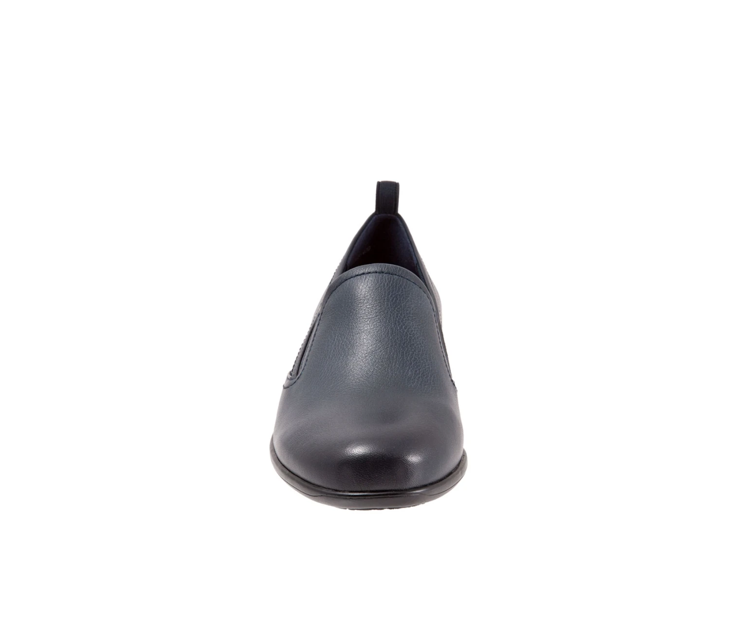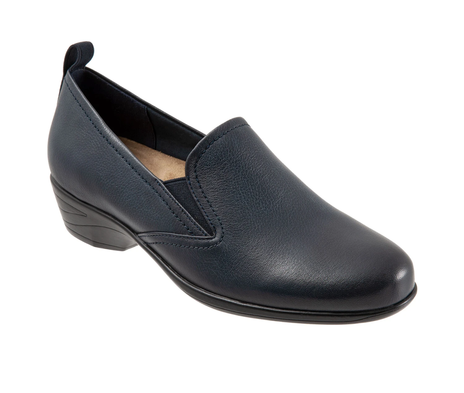 - Comfort with a capital “C”! Trotter’s Reggie is a high throat double gore slip on that is clean and neat. The Reggie has a wonderful stable walking heel for whatever the day has in store for you.