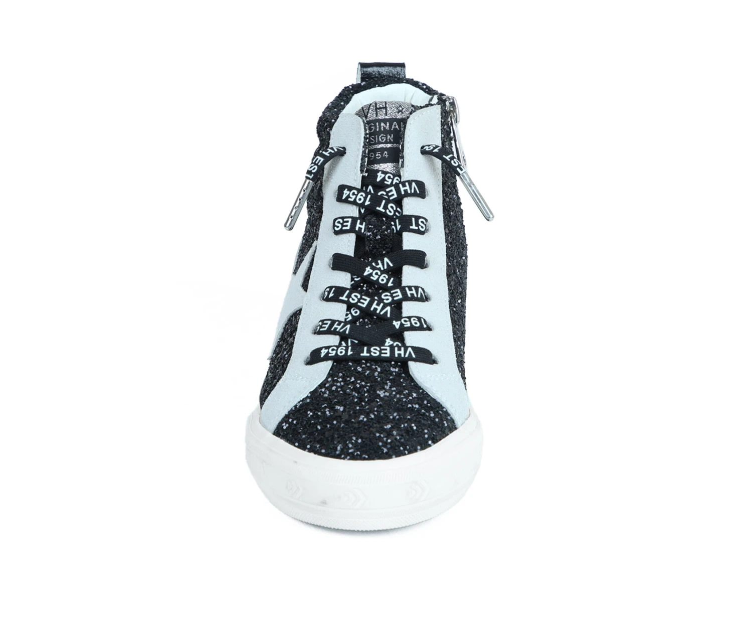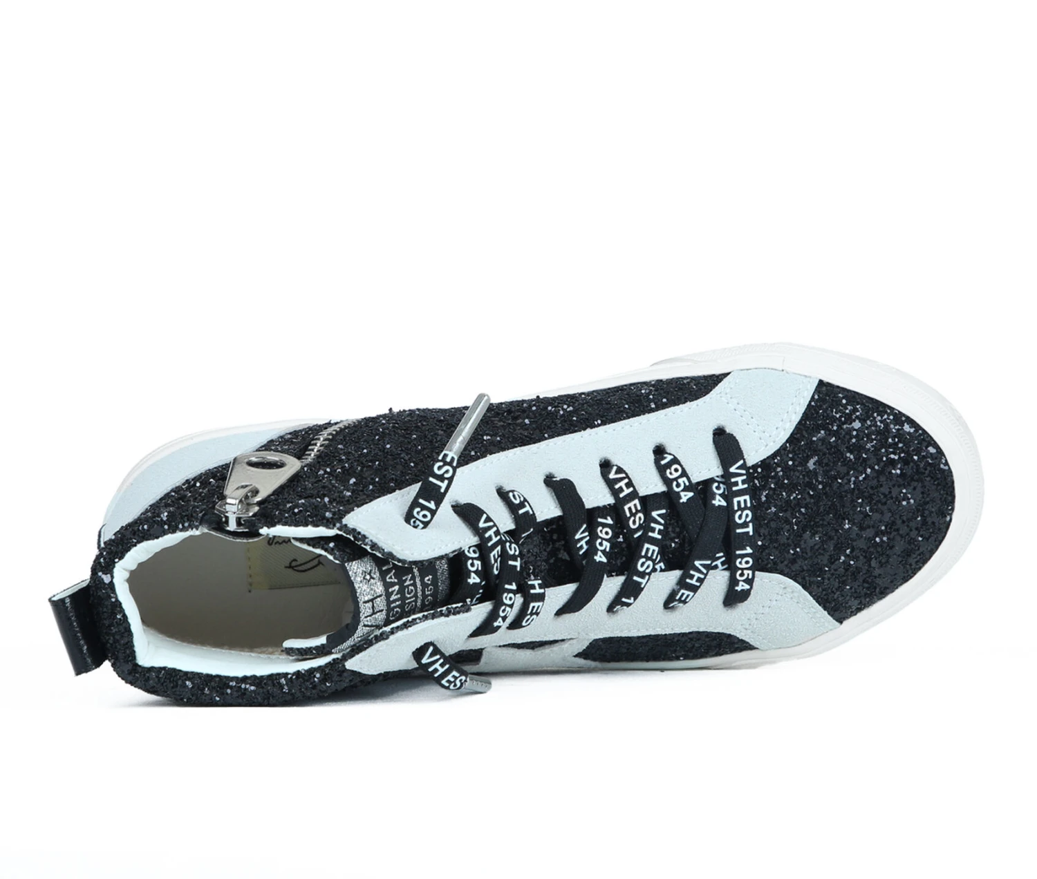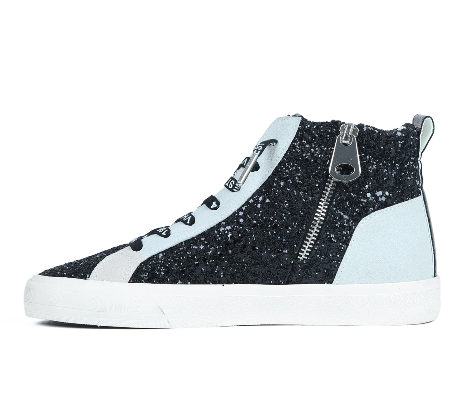 - Side zipper closure with no tie lace accents