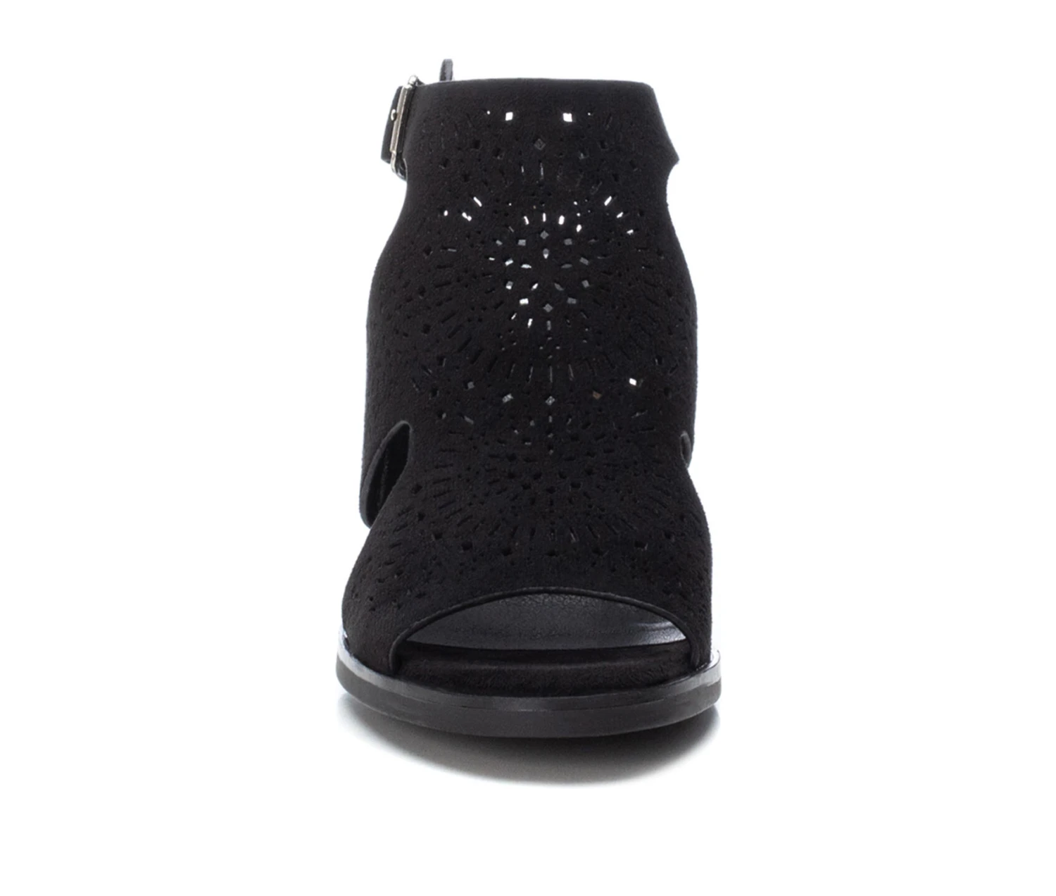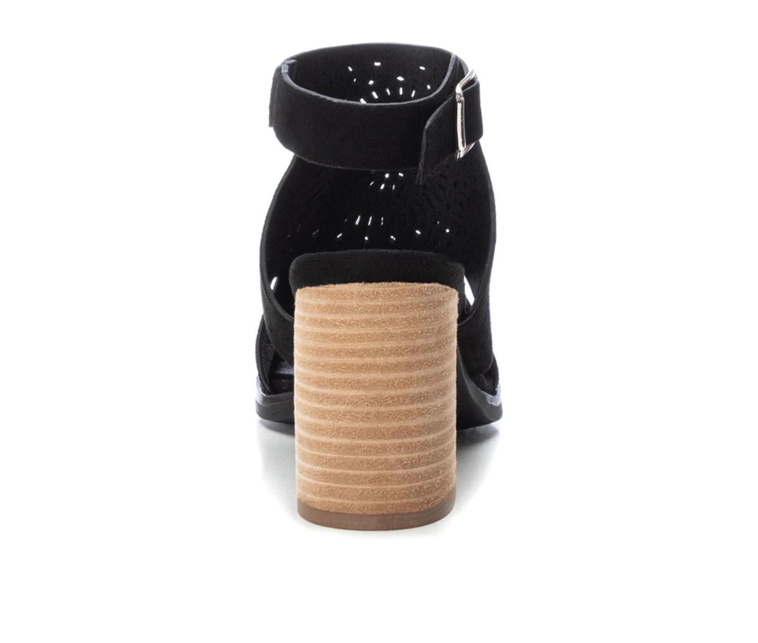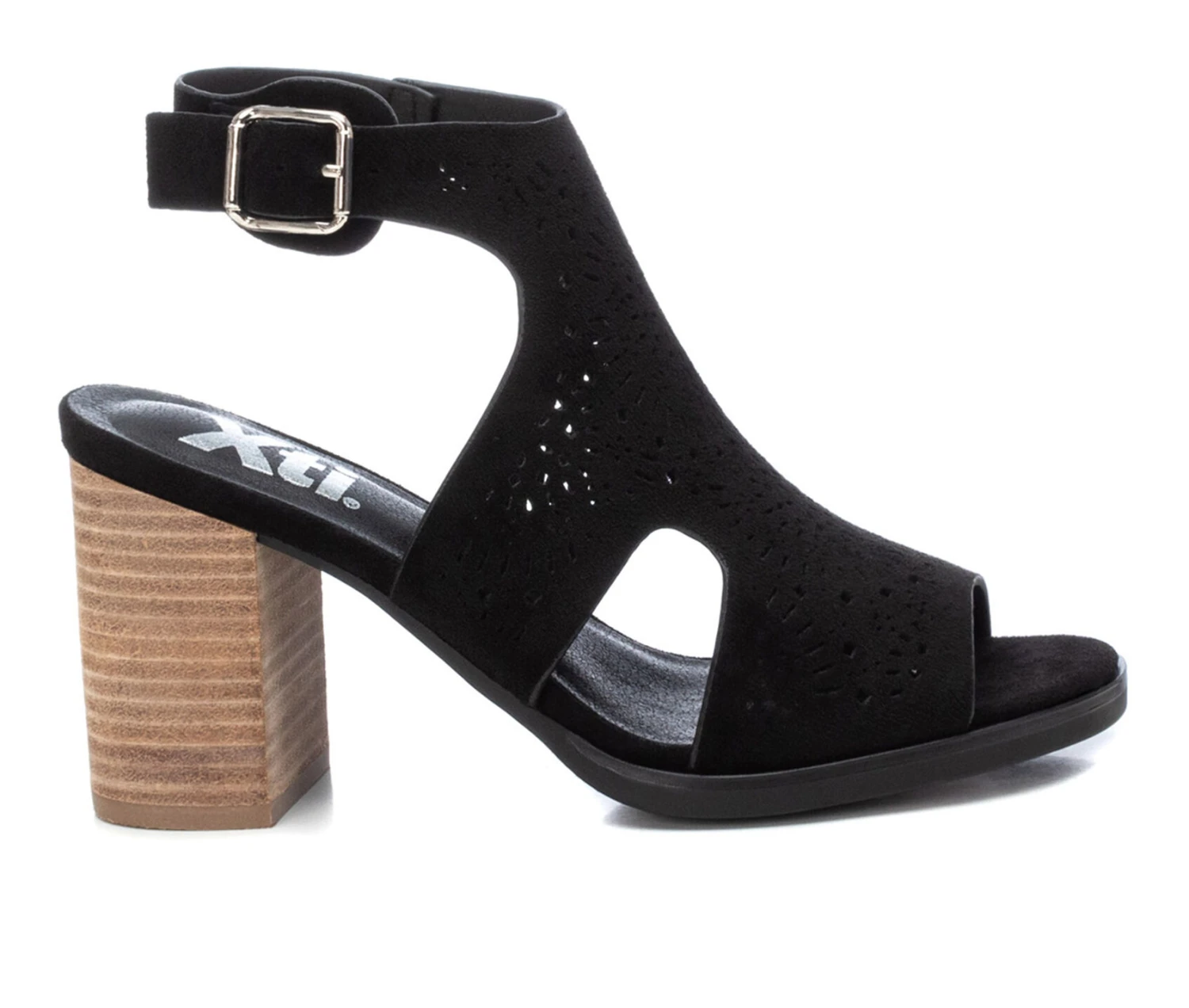 - Women’s Suede Sandals by Xti. Take your style to the next level with Xti Shoes! These 3.54 in high sandals are the perfect blend of casual and comfort. Beautiful die-cut design and buckle closure. Non-slip rubber sole. This model has been certified vegan by the worldwide organization PETA.