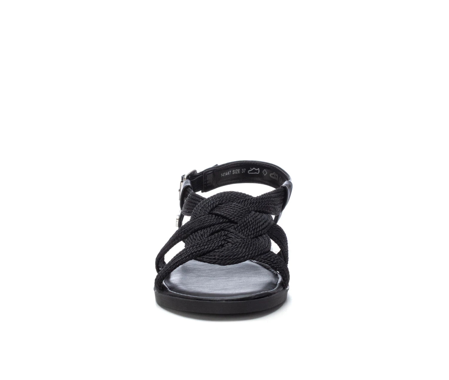 - Women’s Sandals by Xti. Take your style to the next level with Xti Shoes! These flat sandals are the perfect blend of casual and comfort. Trend design that goes well with every outfit. Buckle closure. Durable non-slip rubber sole.