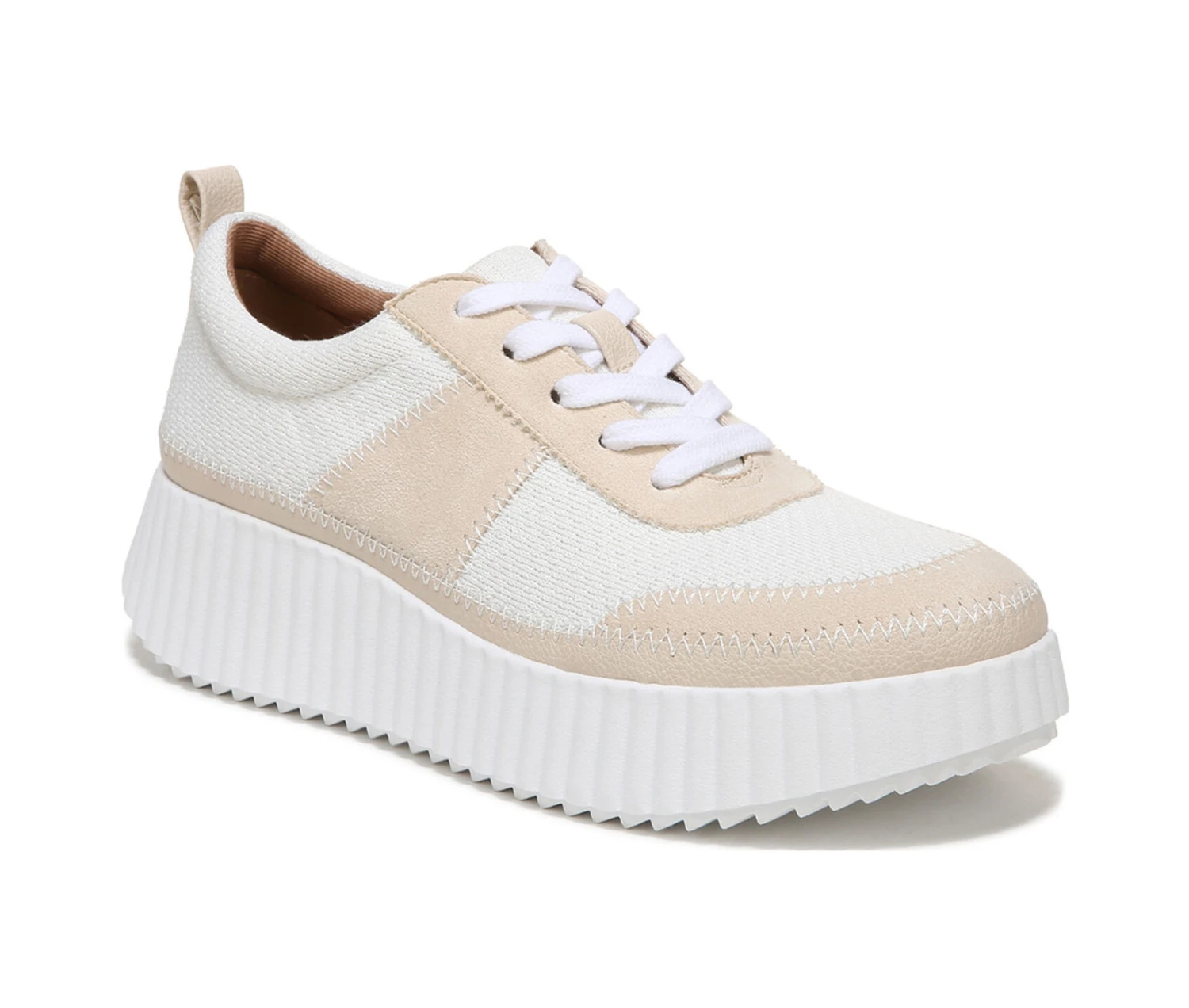 - Comfy, casual, and crafted, you’ll be sporting these cool womens fashion sneakers all season long. Fabric upper. Eco-conscious fabric lining made with 65% recycled materials. Stitch detailing. Lace up closure. Almond toe. Extra arch and heel cushioning for comfort with every step. 1 1/2 inch heel. Synthetic sawtooth outsole.